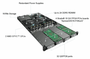 Featuring four FPGA accelerator boards (XpressGXS10-FH8xxG) powered by altera Stratix® 10 GX 2.8MLE, and dual-socket 4th Gen AMD EPYC™ CPUs, this server combines massive compute power with hardware-level acceleration—all in a compact 1U form factor.